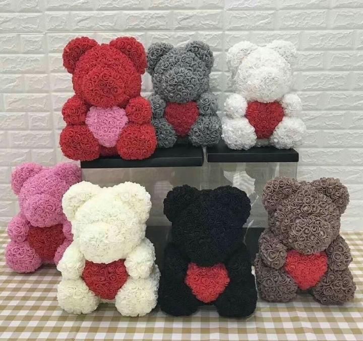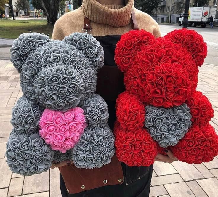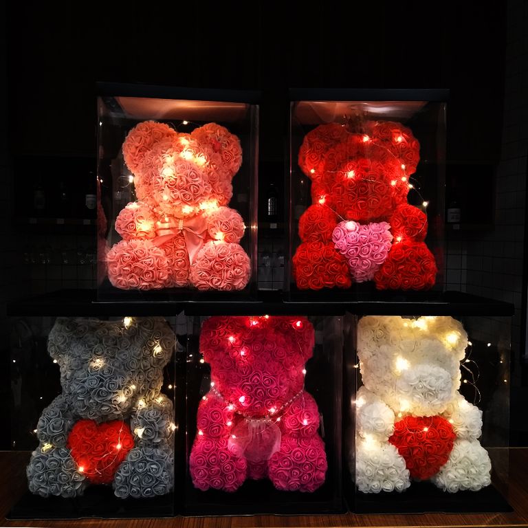 Розы мишки сделаны фоамирана, имеют нежную бархатистую текстуру и приятны на ощупь,а так же являются антиаллергенными - Романтичная подсветка мишки